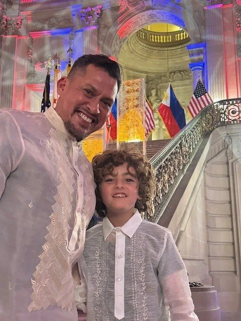 We celebrated Filipino American History Month in style at San Francisco City Hall on October 23, 2025! My kiddo and I dressed up in traditional Barong - Filipino formal wear. The night included an address by Mayor Daniel Lurie, and awards to community leaders: shoutout to my friend, emerging leader Kiki Lopez!. It concluded with City Hall illuminated in the Philippine flag colors—a truly memorable night!